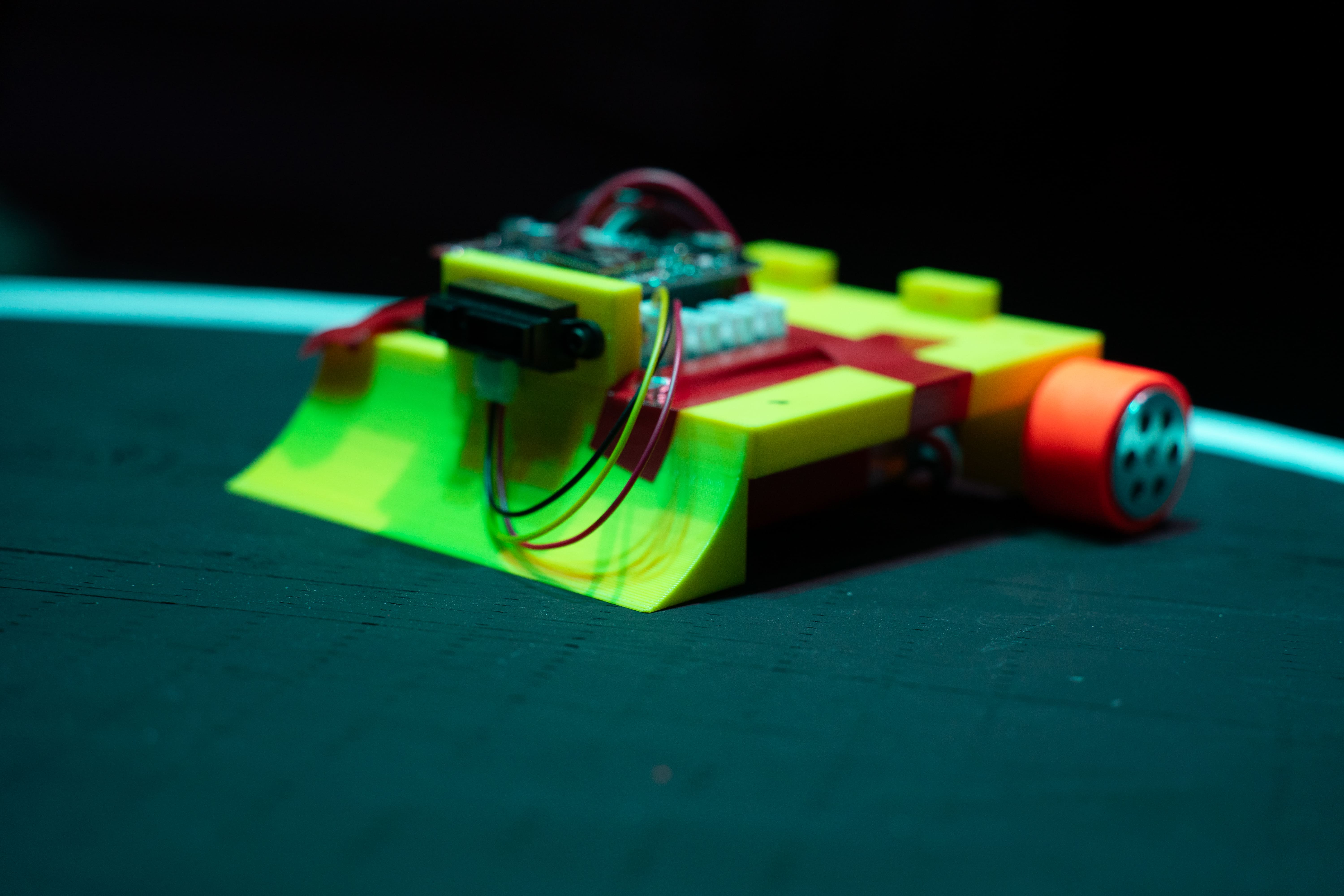 A intramural robotics competition run for high school students to learn the fundamentals of robotics engineering. They put on a competition with full theatrics at the end of the semester for students to compete in. No pictures of students to comply with FERPA.